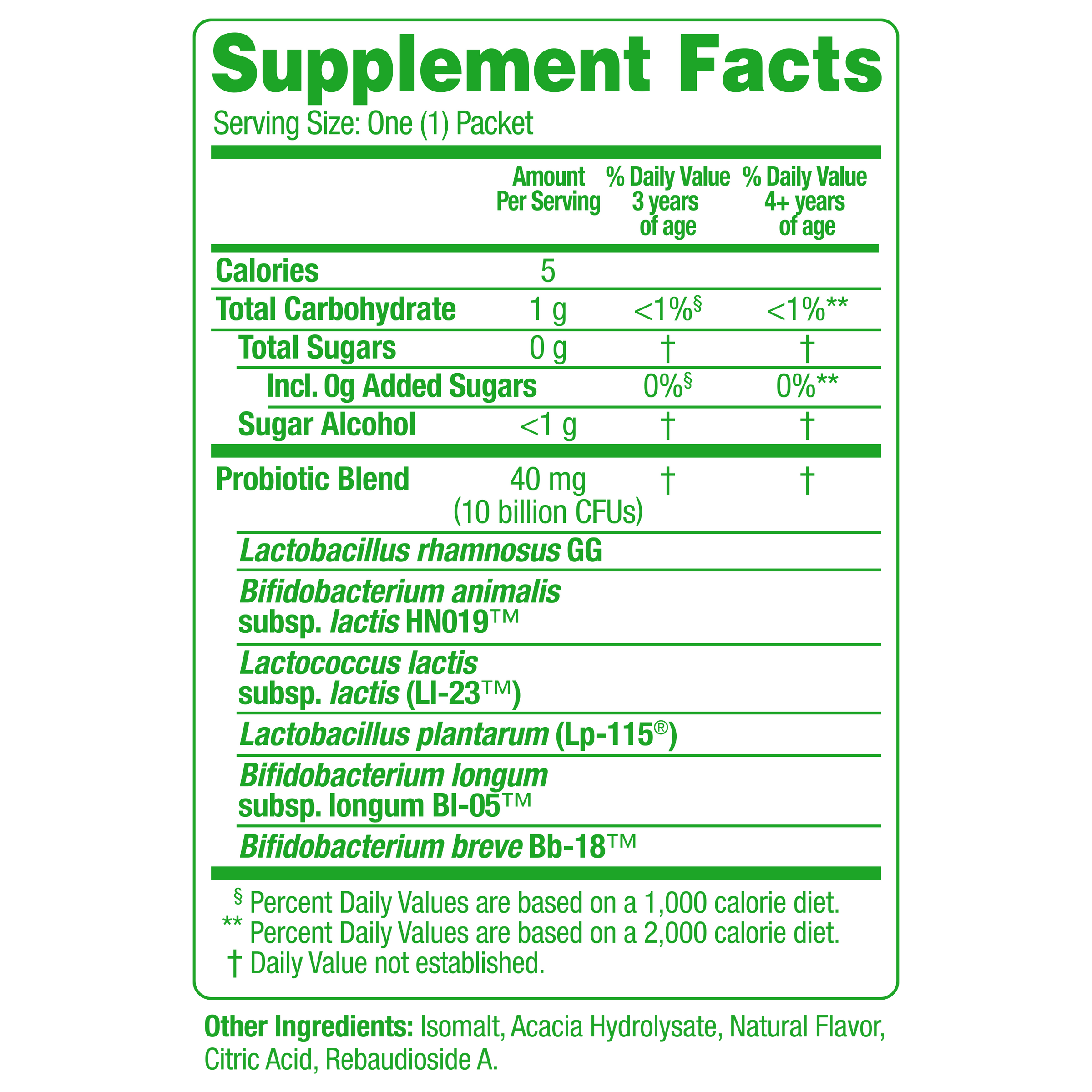 Culturelle® Kids Complete Probiotics Fast Melts are a daily supplement and are designed to be safe for every day, long-term use. As with any supplement, we always recommend that you speak with your child’s Healthcare Professional prior to use.