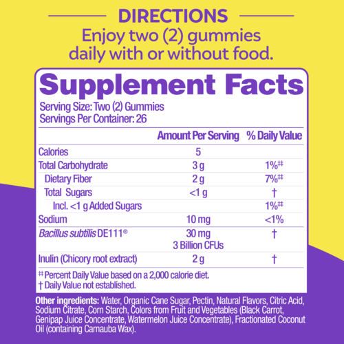 The bacteria that live in your gut microbiome are linked to digestive health, cognition, mood, and your immune system. Factors like diet, exercise and stress all disrupt your microbiome and can lead to a host of issues. Culturelle® probiotic gummies are a great way to balance your gut naturally with the power of good bacteria.* Culturelle® Gummies are made with pectin and real sugar, natural flavors, and colors from fruits and vegetables so they are vegan friendly and extremely delicious; no sugary coating needed. You can rest easy knowing you are supplementing your health with a carefully created gummy, by the makers of Culturelle®.